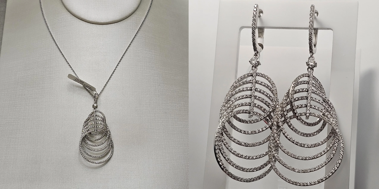 Золотой набор с бриллиантами (кулон 1,79кт. 3/4A. серьги 0,16Ct 4/4А 3,42Сt 3/4)